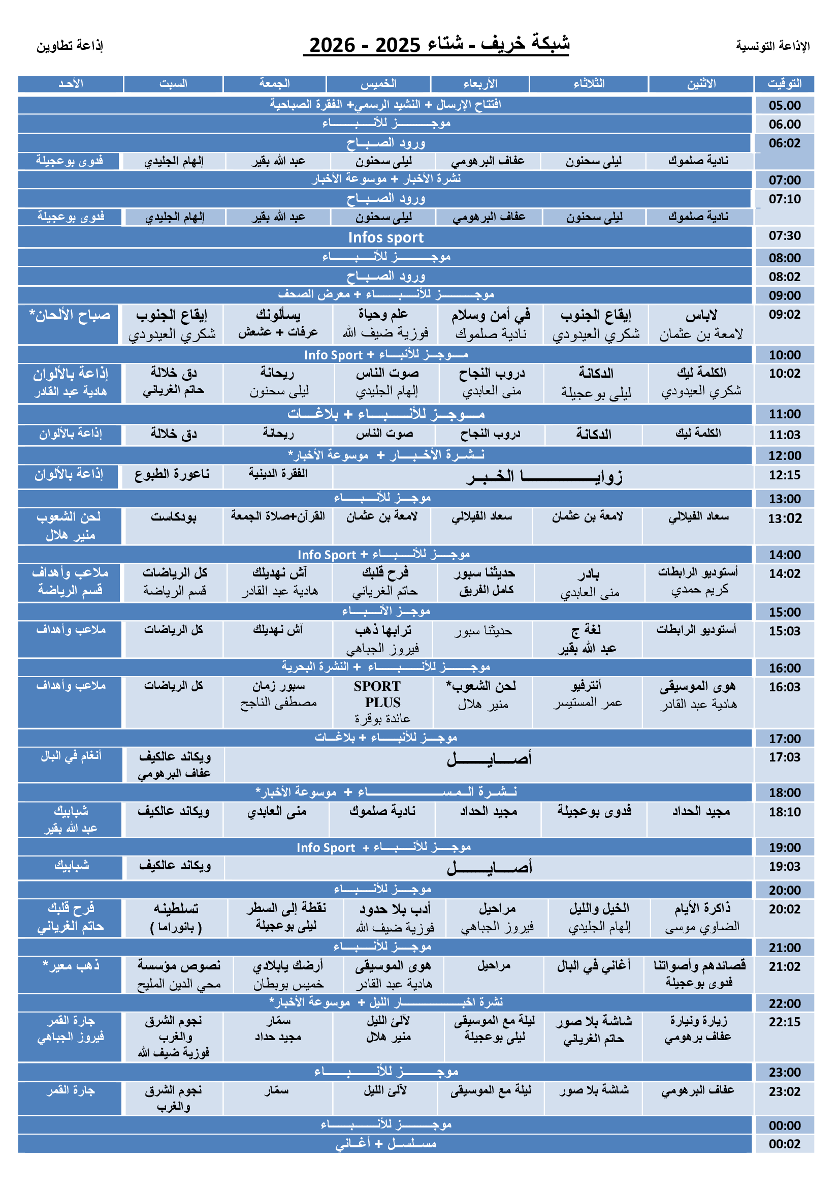 إذاعة تطاوين : شبكة خريف-شتاء 2025- 2026