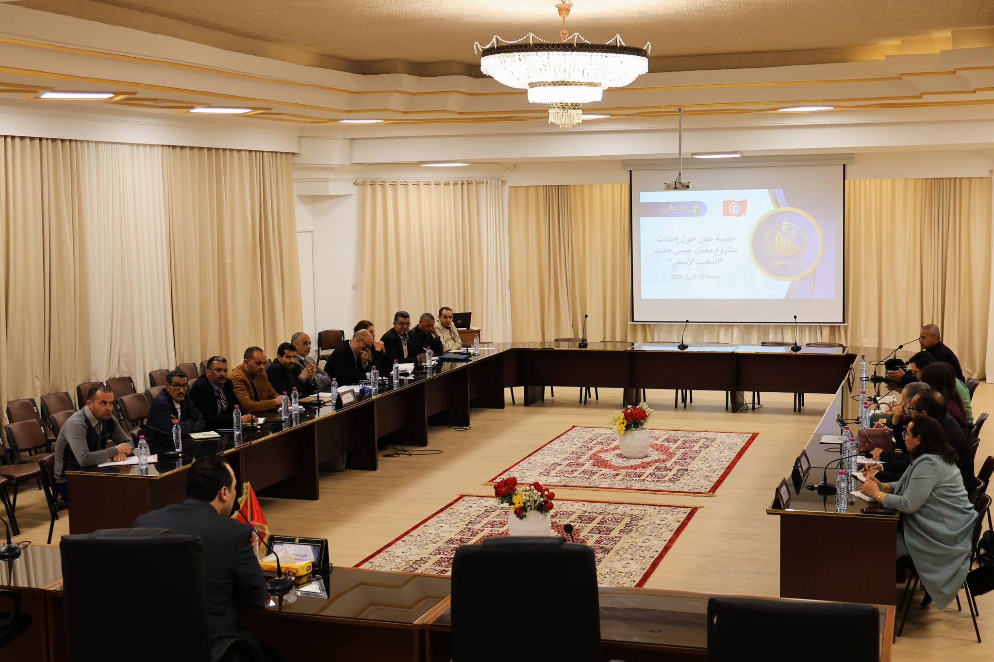 أشرف والي تطاوين، أمير القابسي، صباح الجمعة 10 أفريل 2026، على جلسة عمل خُصصت لمتابعة مشروع إحداث معمل جبس جديد تحت اسم "الذهب الأبيض"، باستثمارات تتجاوز 50 مليون دينار، وعلى مساحة تُقدّر بـ200 هكتار، وذلك في إطار دعم الاستثمار ودفع التنمية بالجهة.